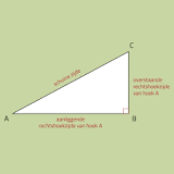 - Cos (∠A)= aanliggende rechthoekszijde van∠A schuine zijde.