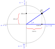 De cosinus en de sinus van een hoek kan je op de goniometrische cirkel aflezen op de assen. Ook de tangens en de cotangens kan je aflezen, en wel op de raaklijnen aan de goniometrische cirkel in punten en : We lezen de cosinus af op de -as, en de sinus op de -as. Hoe bepaal je de periode van een functie? functieperiode
