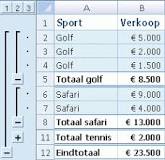 Subtotalen worden berekend met een samenvattingsfunctie, zoals Som of Gemiddelde, met behulp van de functie SUBTOTAAL. U kunt meer dan één type samenvattingsfunctie voor elke kolom weergeven. Eindtotaal zijn afgeleid van detailgegevens, niet van de waarden in de subtotalen.